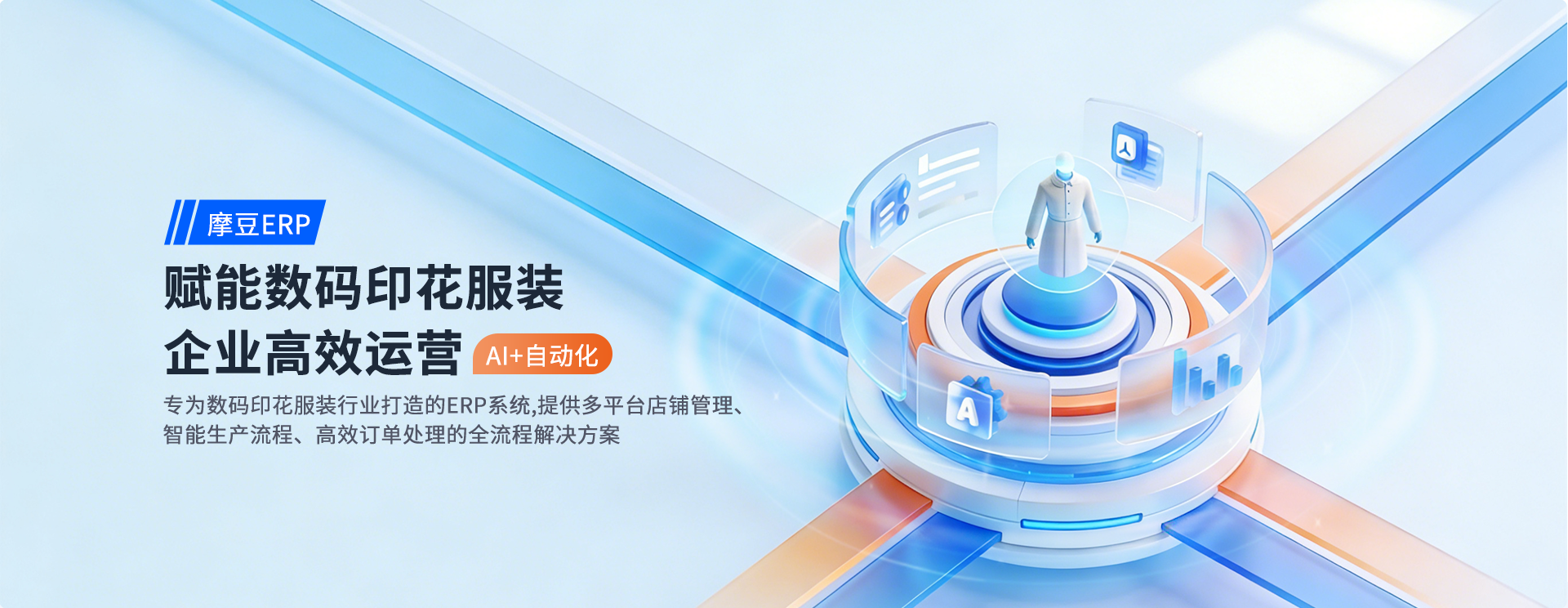 摩豆ERP系统提供了多平台店铺与订单统一管理、POD服装设计与生产管 理等全流程、高效率的行业解决方案,助力铅山数码印花服装工厂降本增 效、快速发展。